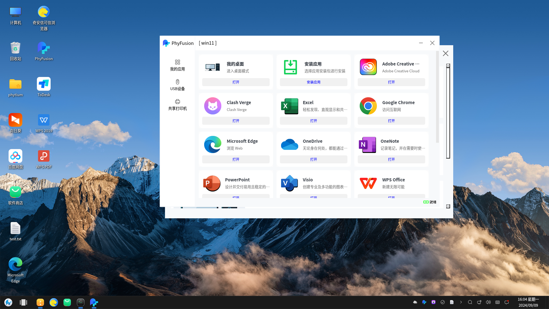 Phyfusion是一款桌面融合平台软件,依托国产操作系统,融合业界主流桌面环境,打造Linux、 Windows和Android等应用的统一运行平台;主要用于多生态桌面环境的安装、运行和管理。支持多桌面无缝切换,文件系统融合、应用窗口融合、GPU 共享加速等功能。
