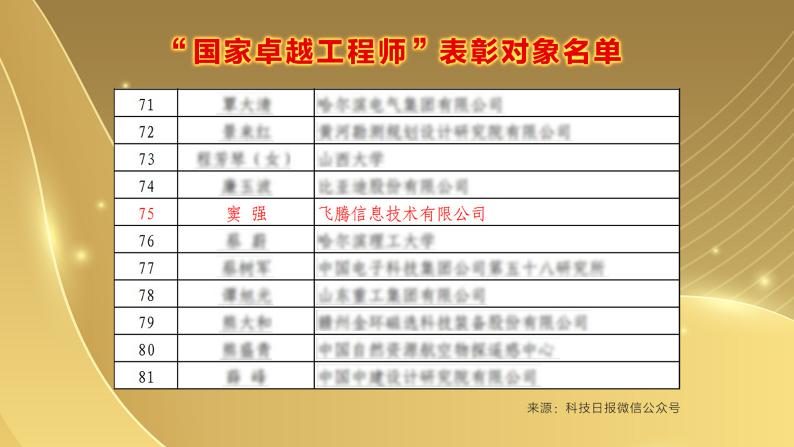 飞腾首席科学家窦强荣获 “国家卓越工程师” 称号