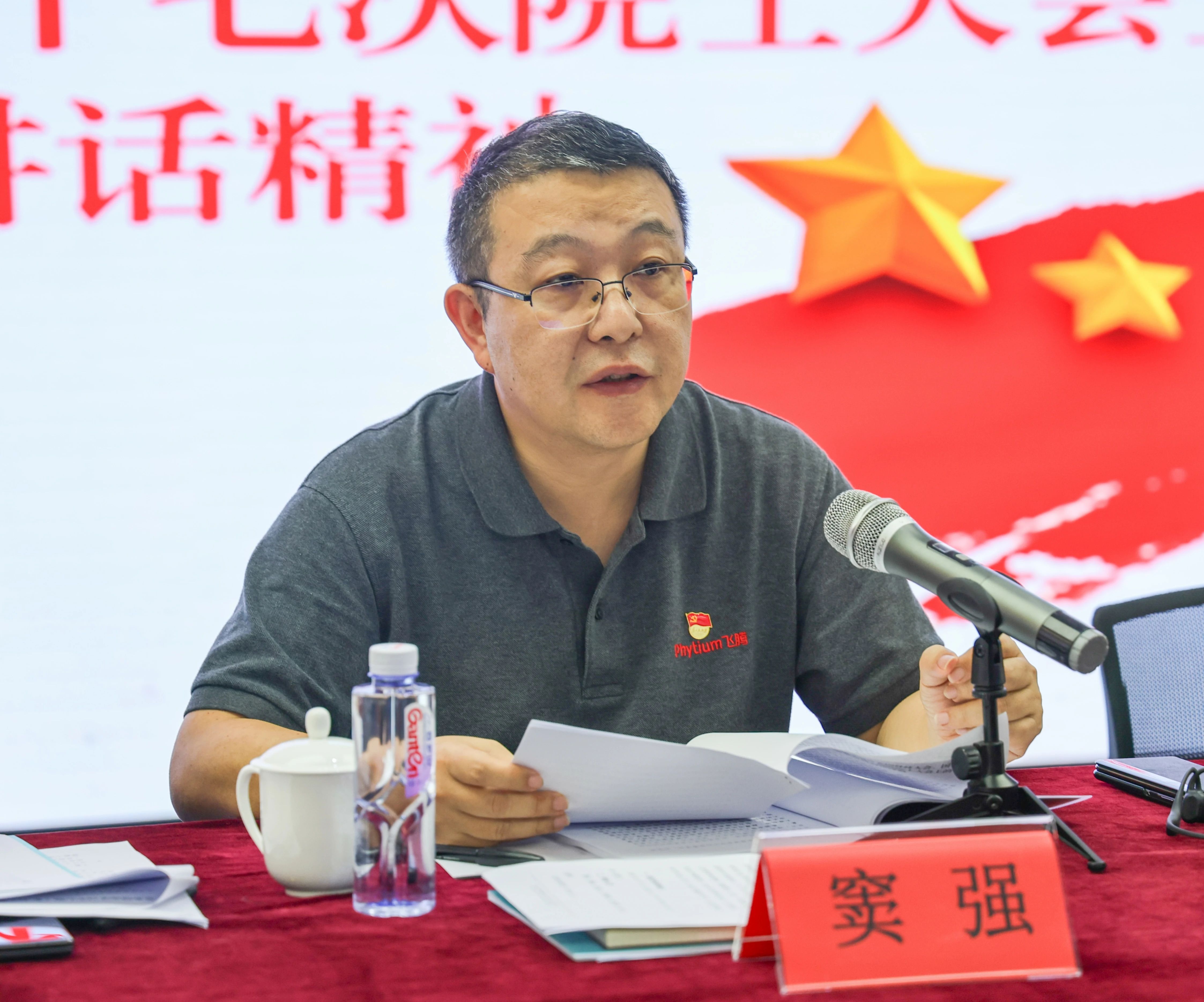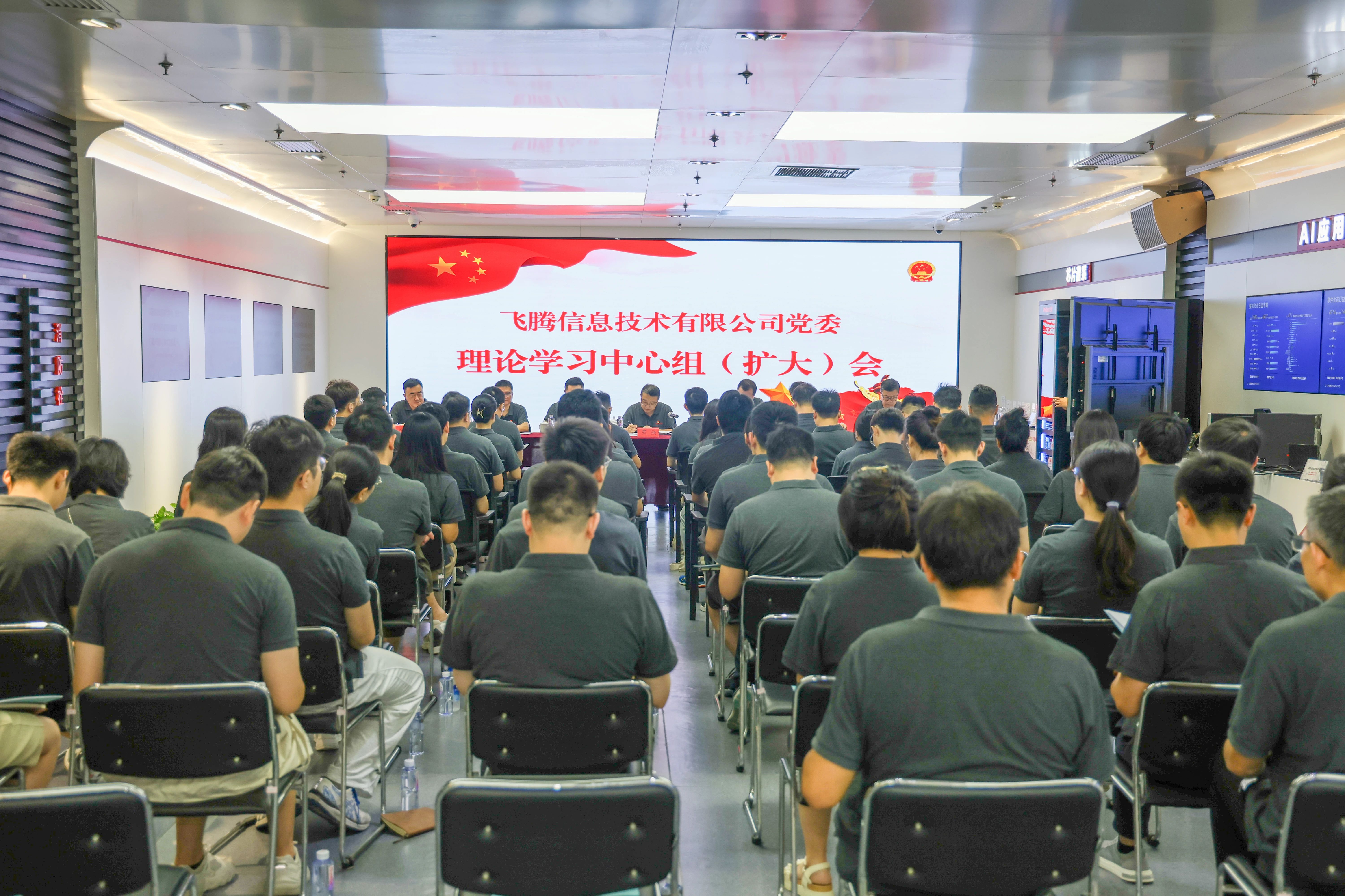 7 月 7 日,飞腾公司党委召开理论学习中心组(扩大)会议。会上,中国电子科技委副主任、飞腾公司首席科学家窦强带领公司党委委员、经营班子成员及党员代表集中学习习近平总书记在全国科技大会、国家科学技术奖励大会、两院院士大会上的重要讲话精神,并结合 7 月 3 日中共中央政治局常委、国务院副总理丁薛祥来公司调研时的指示作专题分享。