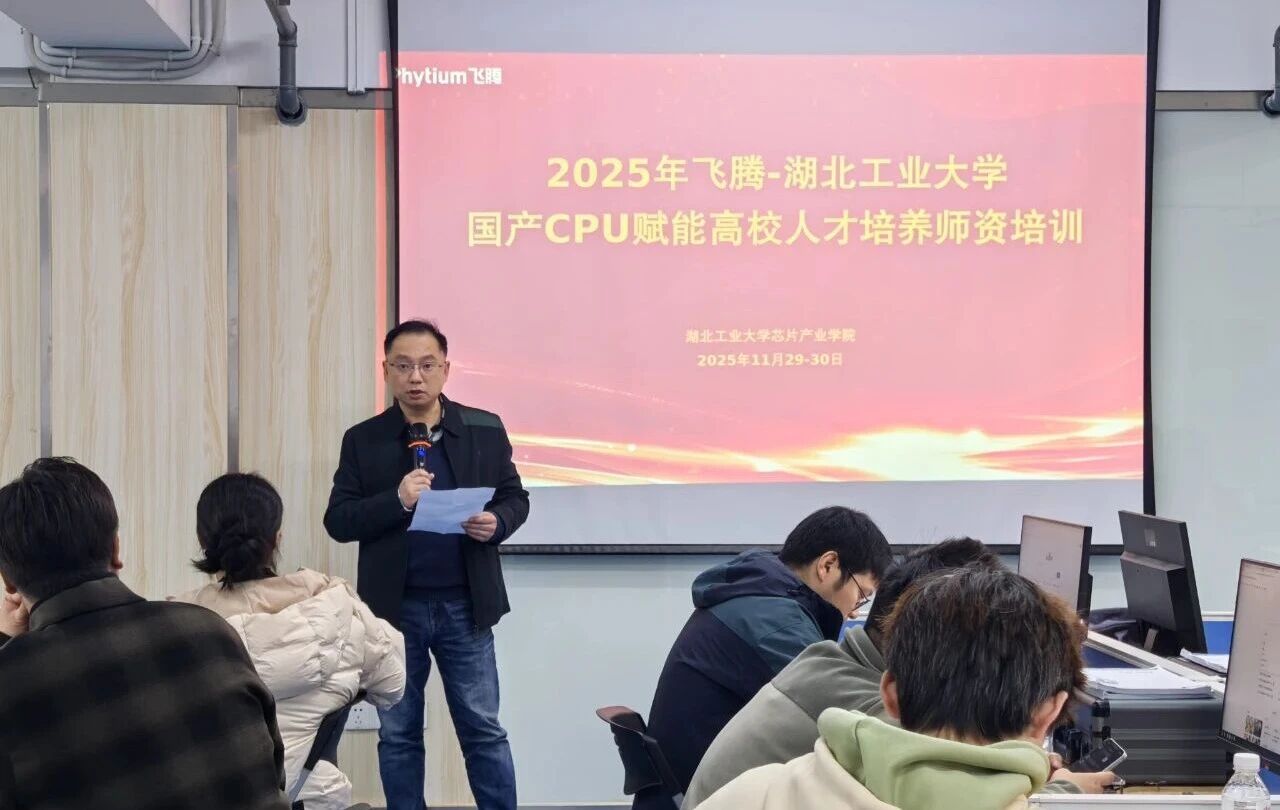 11月29-30日,“飞腾国产 CPU 赋能高校人才培养师资培训” 在湖北工业大学芯片产业学院顺利举行,来自南京信息工程大学、电子科技大学中山学院、中南民族大学、湖北工业大学、武汉职业技术大学等多所高校的 30 余位教师参加。