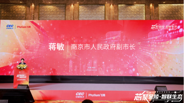 南京市副市长蒋敏出席活动并致辞,代表市政府对各位嘉宾的到来表示欢迎,向长期支持南京发展的中国电子、飞腾信息等致谢。她表示,中国电子与南京合作渊源深厚,自2007 年建立战略合作关系以来,已在宁布局多家企业,去年营收近百亿元。飞腾信息作为国产 CPU 领域核心力量,此次落地研发创新中心,将为南京及江苏人工智能、算力产业发展注入强劲动能。南京将为飞腾信息提供全周期、全方位、全流程的金牌服务,支持企业集聚生态、打造产业集群,携手中国电子深化央地合作,共促产业高质量发展。