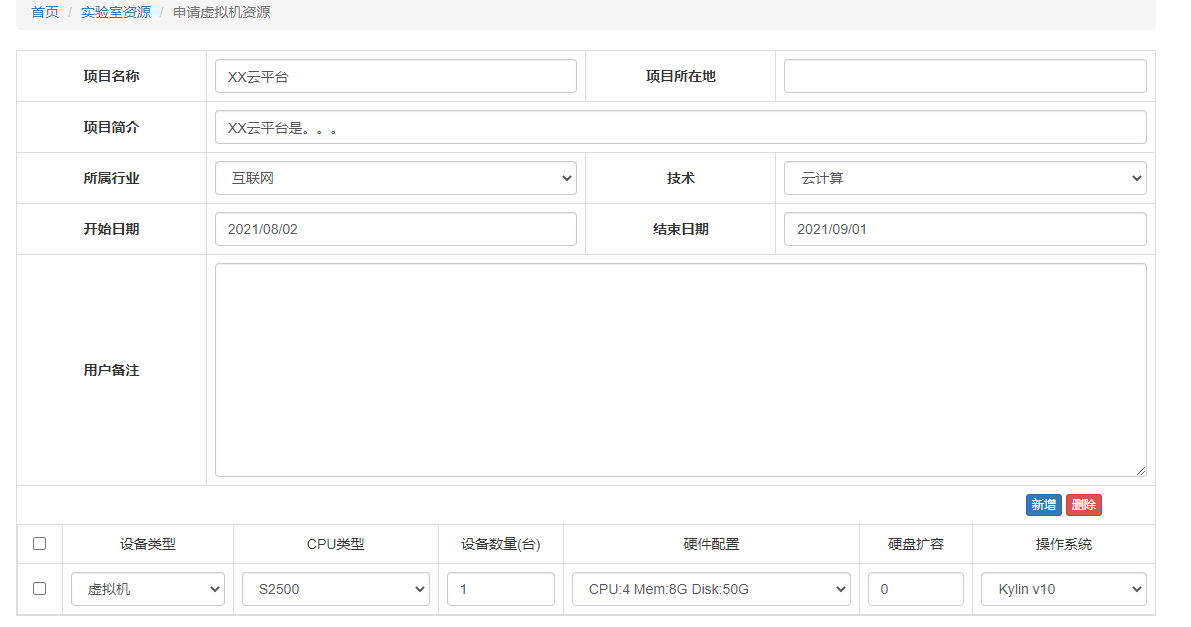 此时合作伙伴可按需求申请资源,填写完成后即可提交,等待后台下发资源