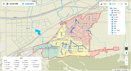 基于地理信息系统(GIS),在城区地图上叠加展示排水管网单位权属管养的各类排水设施,包括排水管网、河涌、重点排水户、泵站、水闸等,形成排水设施资产一张图。