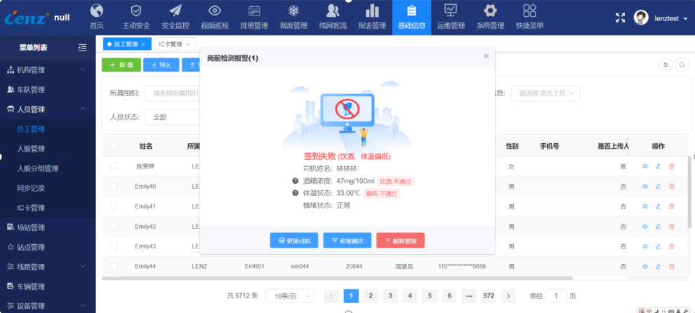 驾驶员全服务周期管理,融合人脸+酒测+测温+情绪+心率+血压评估,全面关注司机身心健康。