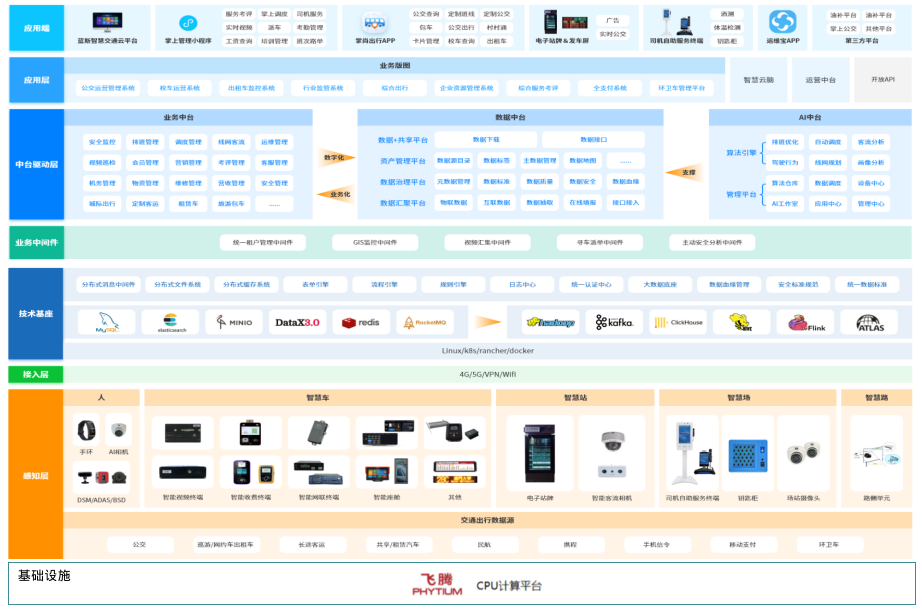 厦门蓝斯通信股份有限公司与欣欣晶智-飞腾联合实验室共同打造的企业级全流程信创数字化智慧公交解决方案,通过与飞腾芯片产品充分融合,使用飞腾处理器算力底座支撑,实现全流程公交运营管理,建设全流程运营监控,公交排班、公交调度、视频监控、客流跟踪、驾驶员全服务周期监控、车辆全服务周期监控等。围绕公交运营过程中的痛点,通过人工智能、大数据、机器视觉等先进技术,提升系统智能化程度和使用体验。