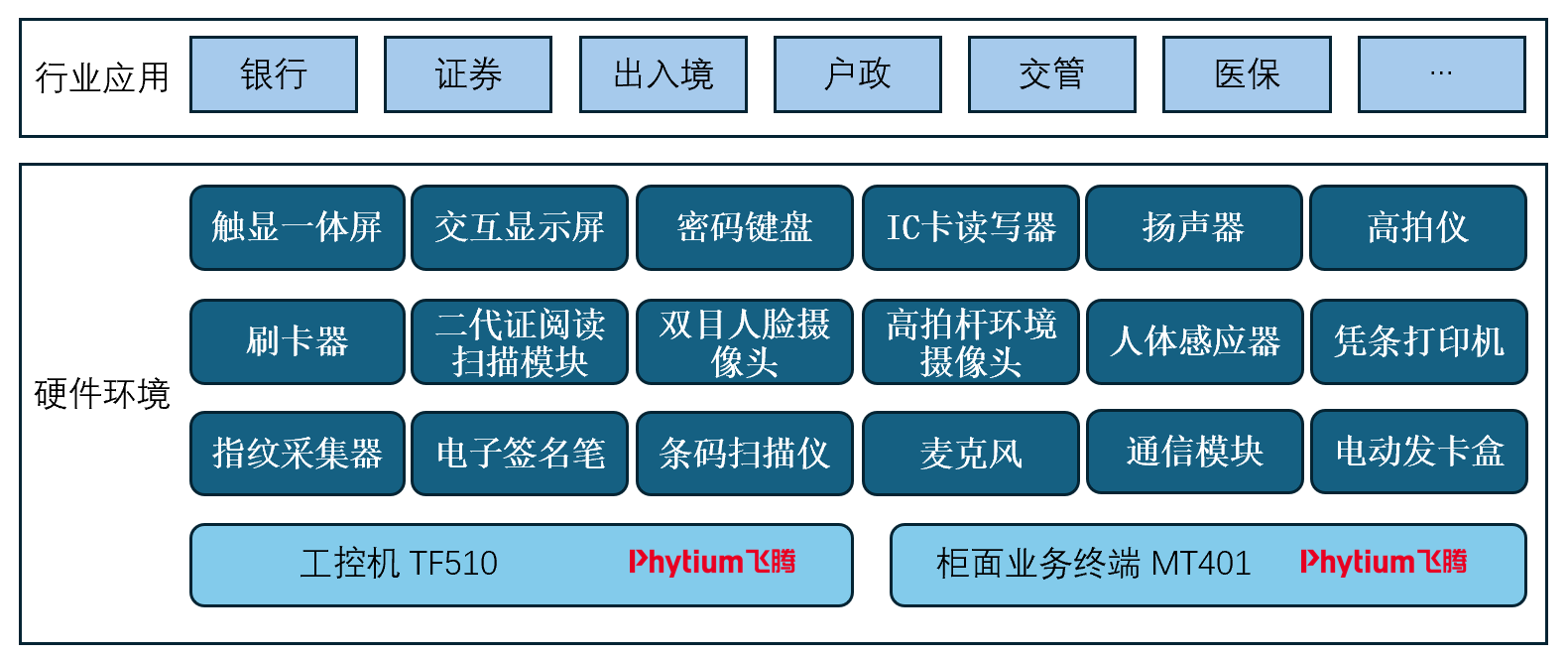 长城信息与飞腾联合推出的信创金融工作站解决方案,符合我国主导的PISA CEN/XFS标准、金融机具接入架构及驱动接口标准,可广泛应用于银行、证券、保险、户政、交管、人社、医保等行业应用场景。
