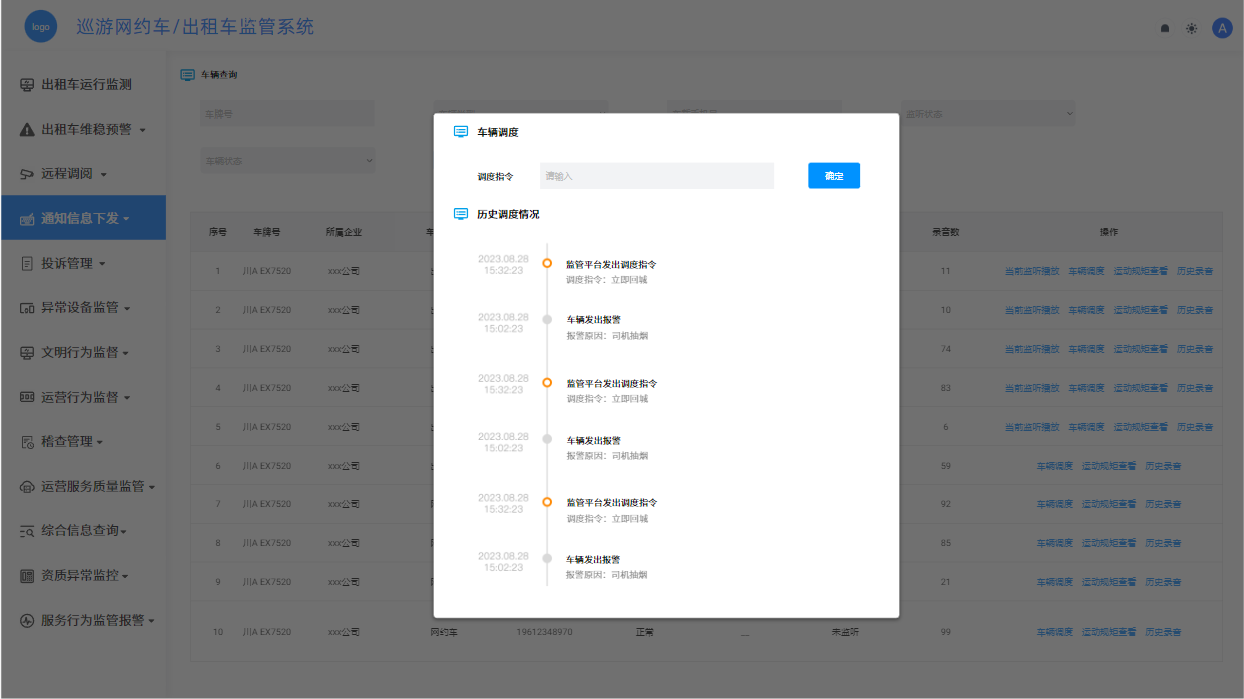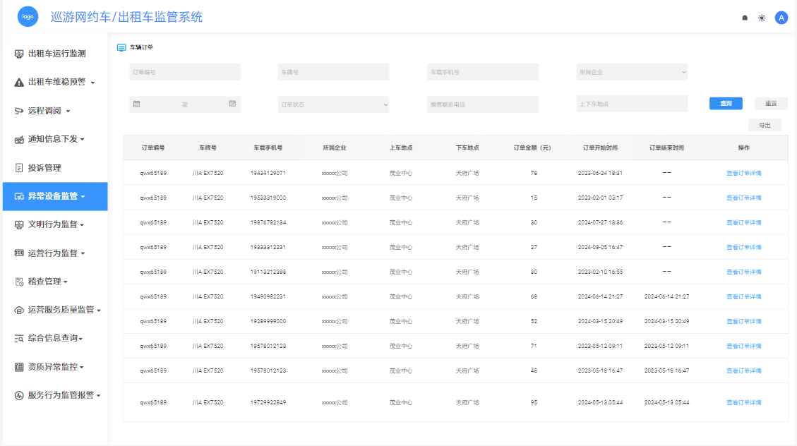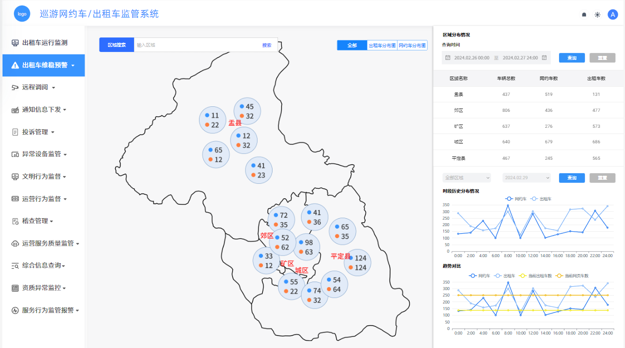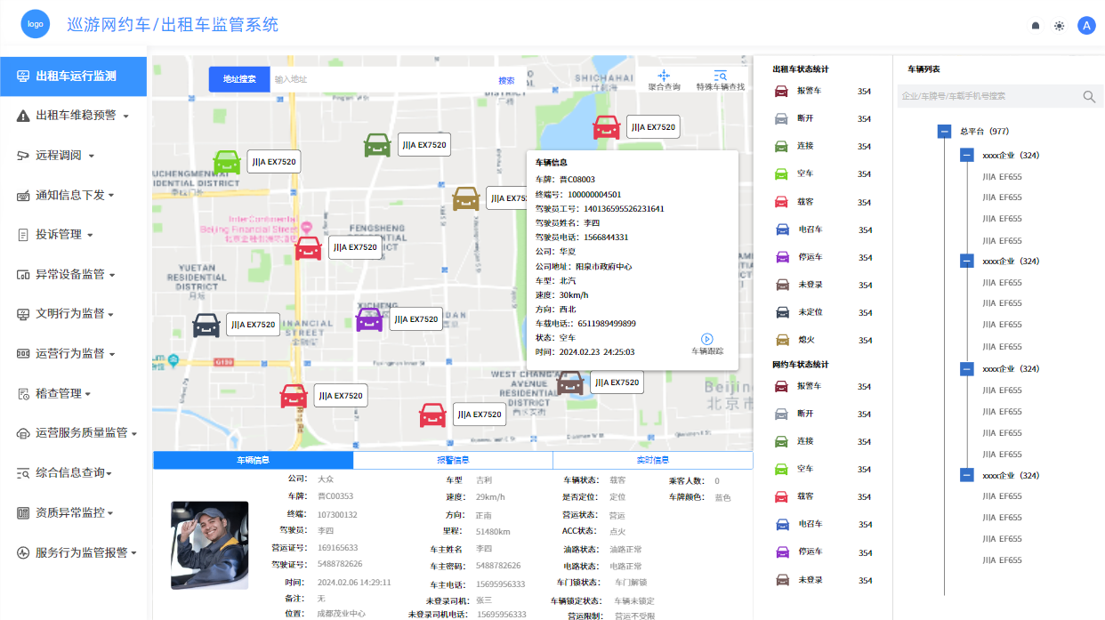 通过建设巡游网约车/出租车监管系统,我们将实现对车辆信息的全面收集、整合和管理。该系统将汇集车辆的基础信息、运营数据、行驶轨迹等关键数据,并通过统一的数据接口和管理平台,实现对车辆运行状况的实时监控和动态管理。