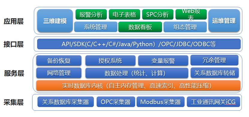3.数据接口层:提供 WebAPI、SDK、SQL/ODBC 等访问接口,支撑 MES、DCS、ERP、SCADA 等系统对接。